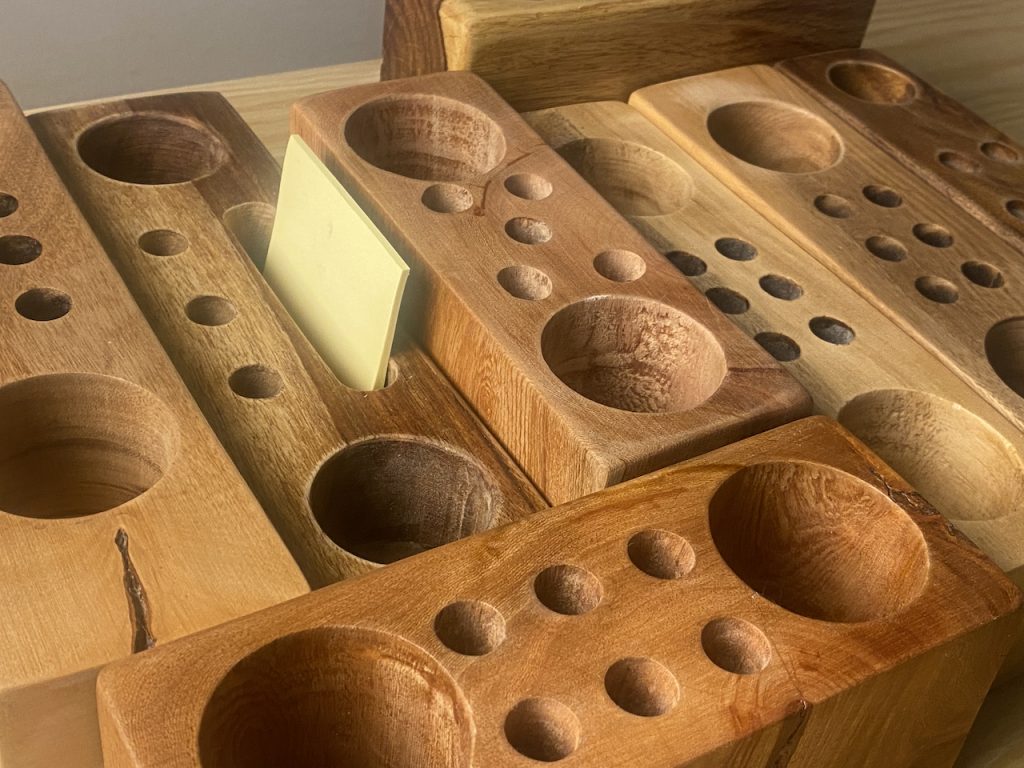 A wooden stationery holder, with its thoughtful design, keeps your desk or art supplies in perfect order. The elegant organization it provides promotes mental clarity, transforming your workspace into a serene and productive environment. Each piece, crafted with care, not only serves a practical purpose but also adds a touch of natural beauty to your space.